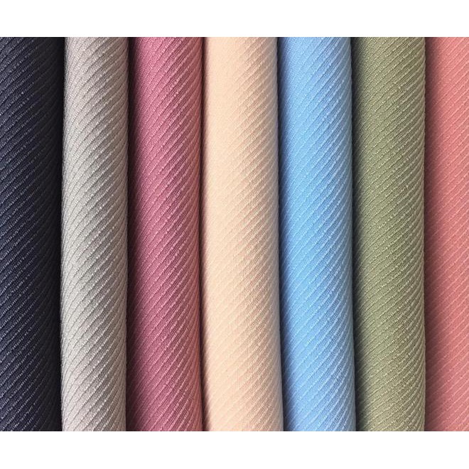 salah satu kain campuran katun dan Polyester, yang nyaman pada saat dikenakan dikulit, adem menyerap keringat dan tidak mudah kusut, bahannya jatuh dan agak stretch, serta berteksture garis miring